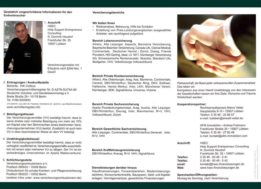 HSEC Help Suppport Entrepreneur Consulting N. Dominik Heudorf Frankfurter Str. 35 • 15907 Lübben Telefon: 03546-9349-541 (bei Abwesendheit Anrufbeantworter) Telefax: 03546-9349-542...