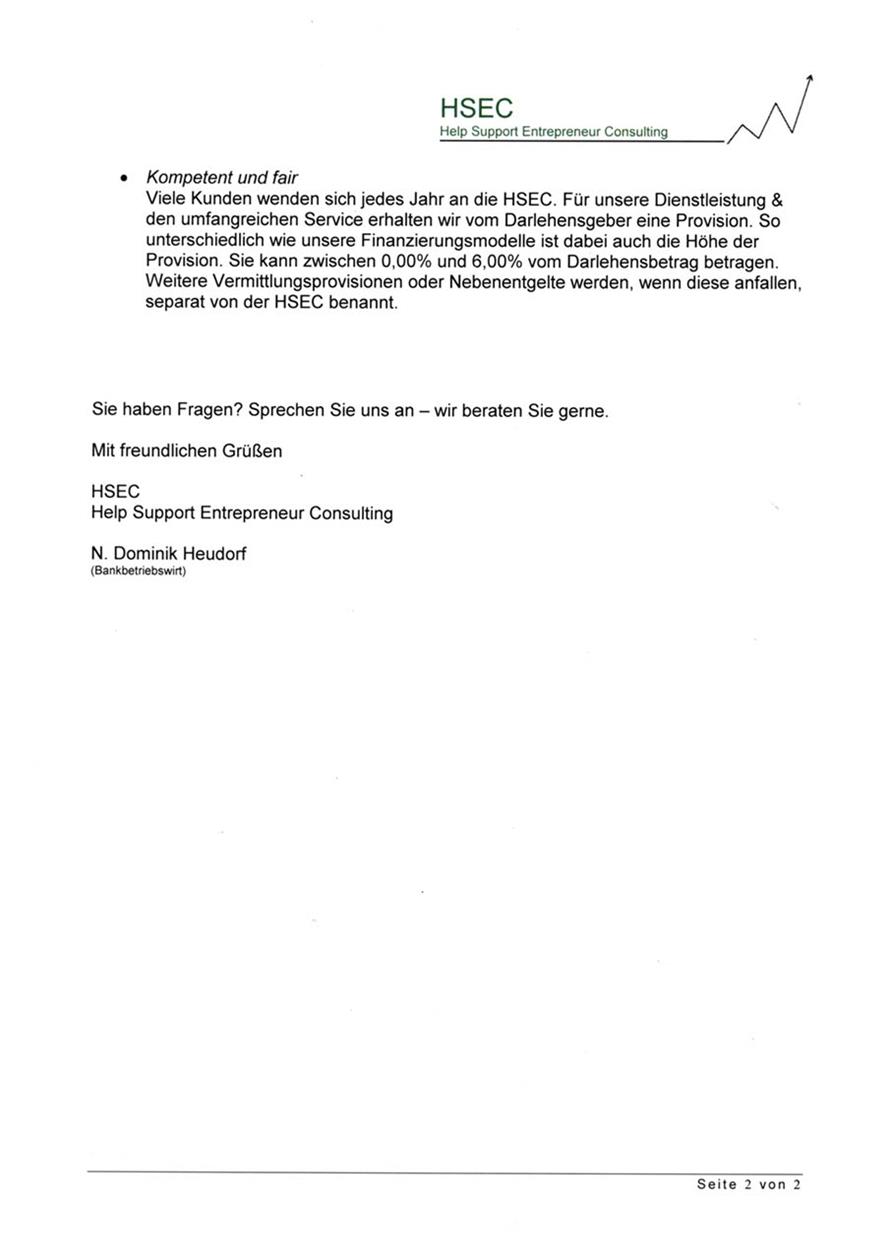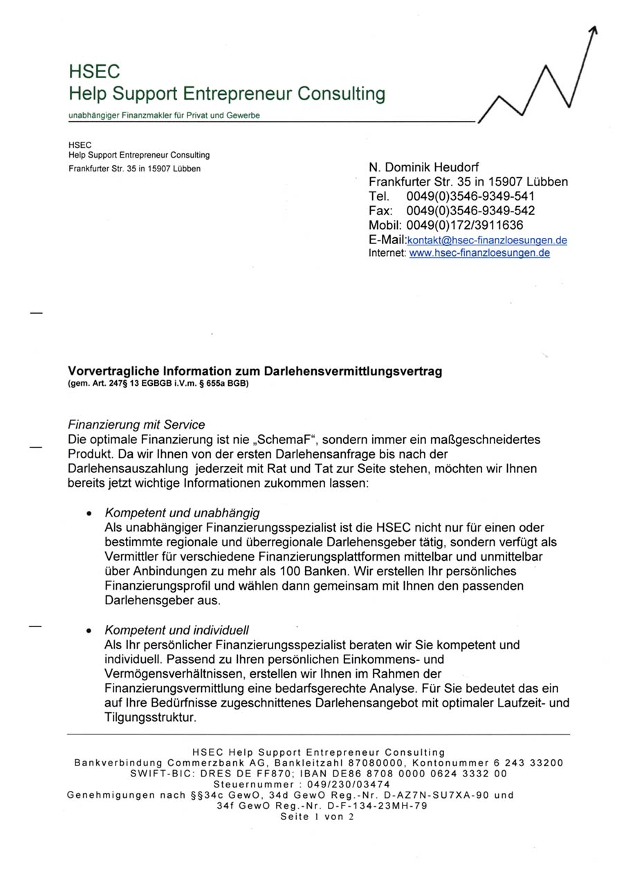 HSEC Help Suppport Entrepreneur Consulting N. Dominik Heudorf Frankfurter Str. 35 • 15907 Lübben Telefon: 03546-9349-541 (bei Abwesendheit Anrufbeantworter) Telefax: 03546-9349-542...